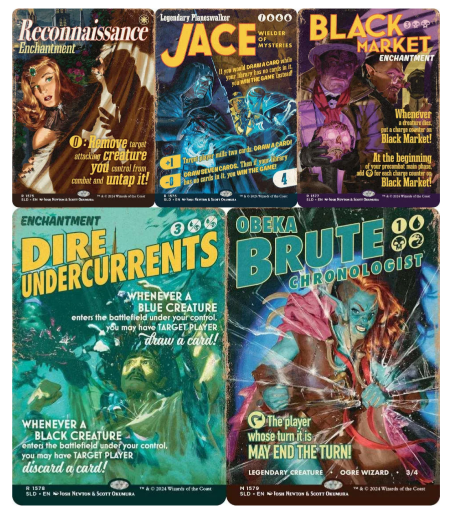 According to ComicBook.com, the new set is taking five previously released cards from Wizards of The Coast catalog and giving them fresh new artwork designs created by artists Josh Newton & Scott Okumura.